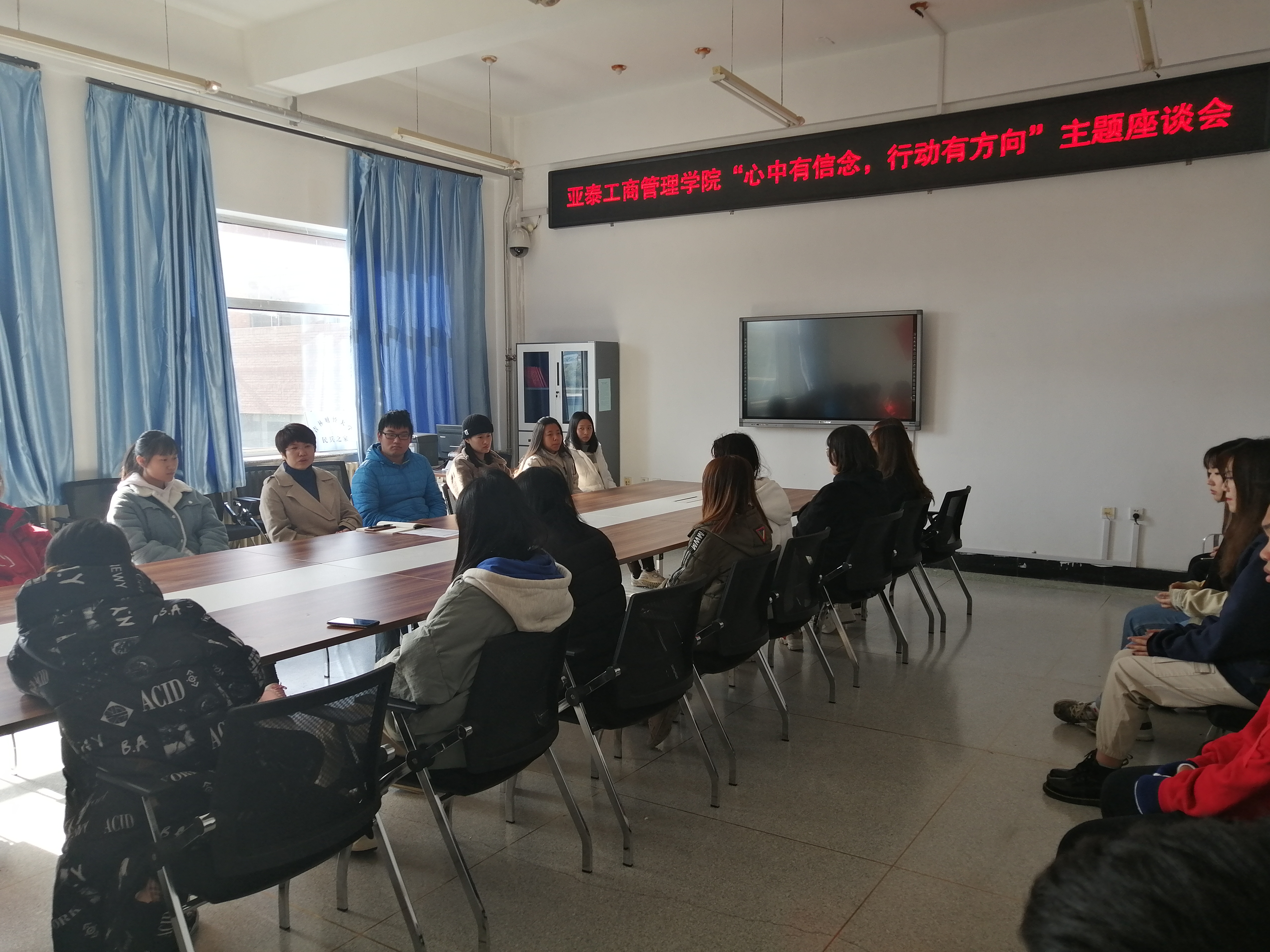 团委书记李萍老师组织2018级部分同学举行“心中有信念,行动有方向”主题座谈会,会议由人力资源专业1827班团支书韩晓同学主持。