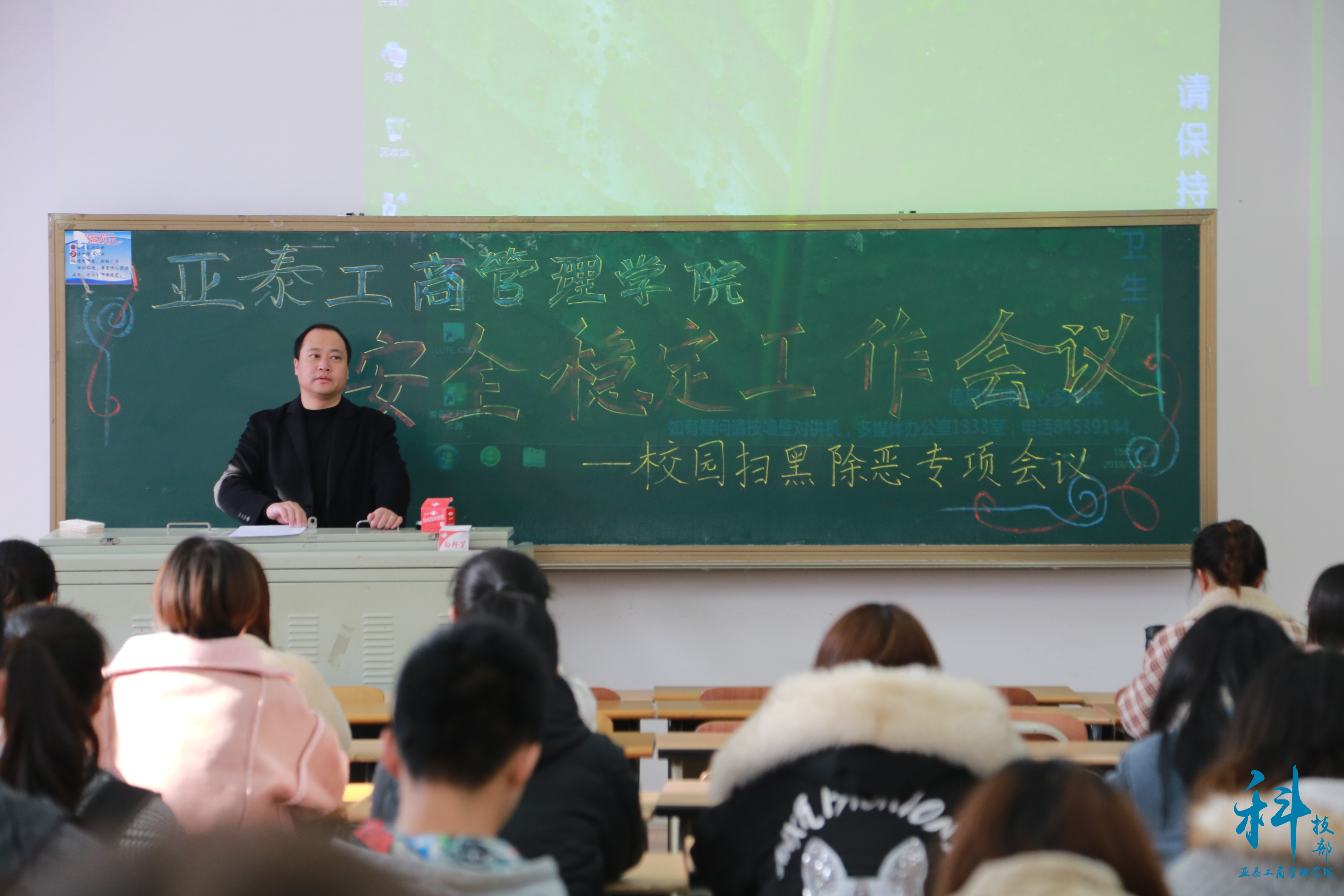 于2019年3月27日在第一教学楼1235教室开展了安全稳定工作暨校园扫黑除恶专项会议。此次会议受到了麻豆网