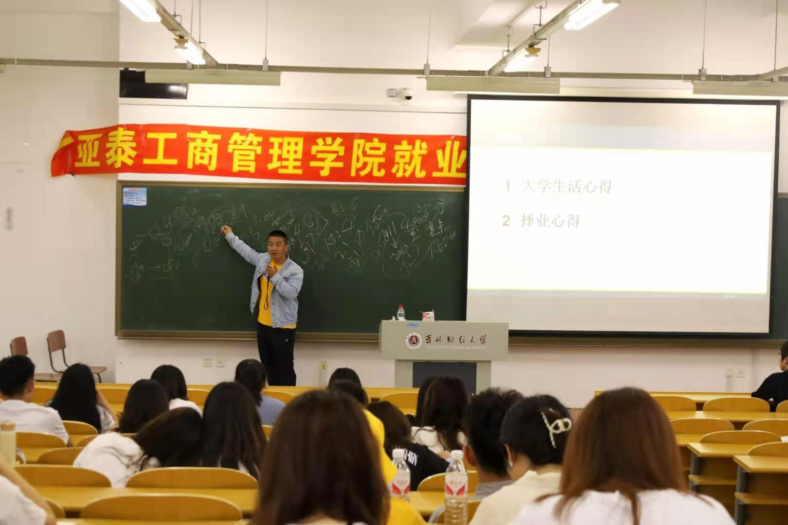 首先,吴雪东校友以诙谐幽默的语言开场与参会学生拉近距离,深刻而生动地描述了自己的职业生涯,并指出部分人对市场营销专业的误解,由此呼吁同学们热爱学校、热爱自己所在专业。接着,他从大学生可能遇到的几个常见问题入手,先后讲解了在校学习的重要性、该考取何种证书、该不该考研、什么样的学生适合考研等问题,并以许多学生关注的择业就业问题为重点,提出“择业六要素”,多角度多方面、简单精炼地为参会同学指明方向。每一问题切合在校大学生实际,每一回答符合当代大学生追求,讲解过程中不乏生动事例,吸引同学们的兴趣,令同学们印象深刻、收获颇丰。