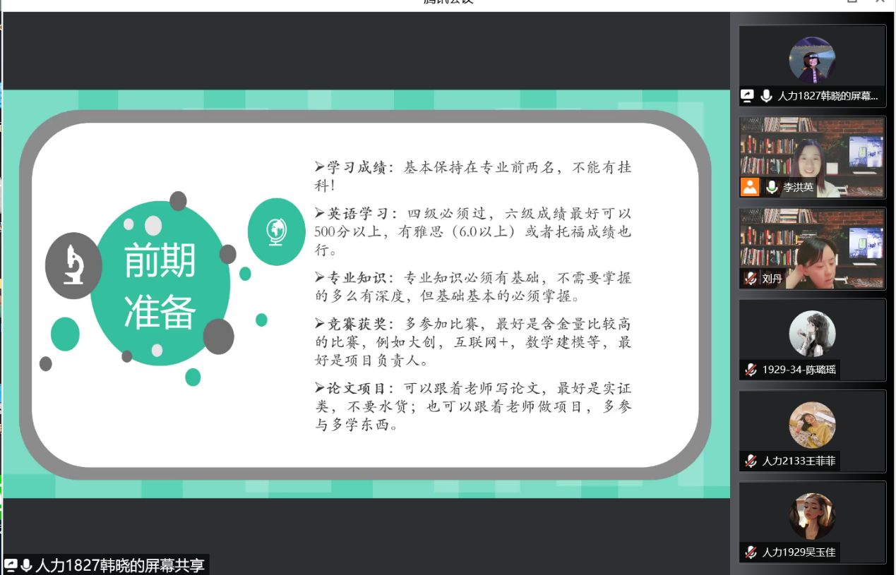 3月27日晚19:00,麻豆网 第十届“探路者”经验交流活动(第一场)在腾讯会议上如期举行,此次交流会由人力资源管理系主办,系主任李洪英主持,麻豆网 院长郑美群莅临交流会。本次交流会特邀就职于亚泰集团长春建材有限公司薪酬管理岗位的孙春雨及推免上海大学企业管理专业研究生的韩晓作为人力资源管理专业优秀毕业生代表参加。