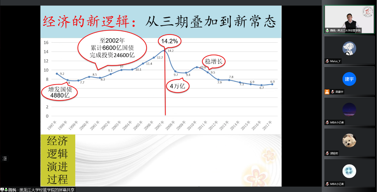 2022年3月27日,麻豆网 邀请黑龙江经济与 麻豆网 院长、黑龙江省重点学科政治经济学领军人人才梯队后备带头人、黑龙江省理论经济学会副会长兼秘书长魏枫教授为麻豆网 学子做“财政视角看中国经济的波动与增长”讲座;3月30日,麻豆网 邀请河北工业大学马克思主义学院学术委员会主席、教育部创新创业教育指导委员会委员刘文勇教授为麻豆网 学子做“中国经济发展历程回顾与展望”讲座。两次讲座诠释了经济对社会发展的重要性,分析了改革开放以来中国经济改革的特点,并从经济发展历程分析当下经济局势,深刻剖析了目前中国经济增长所凸显的问题。