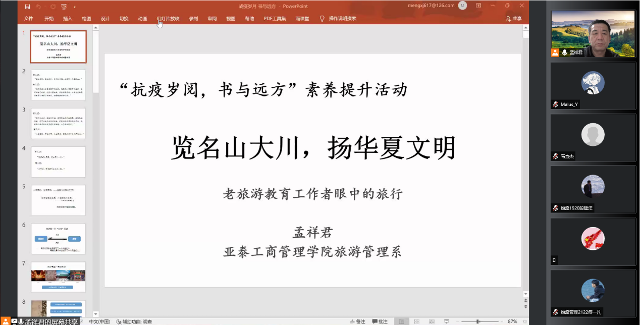 2022年3月30日,麻豆网 邀请吉林大学心理学博士、现麻豆网 心理与行为研究所所长王晖教授做“疫情期间的心理调适专题报告”讲座;4月3日,麻豆网 旅游管理系主任孟祥君副教授为麻豆网 学子做“览名山大川,扬华夏文明”主题讲座;4月9日,麻豆网 工商管理系教师邵鲁副教授为麻豆网 学子做“品国学经典,启管理智慧”主题讲座。三次讲座意在调试与排解学生心理上的困扰,使同学们拥有健康的心态。同时提醒同学们静态管理期间也不能停止阅读的脚步,通过阅读丰富思想内涵,培养人文底蕴。