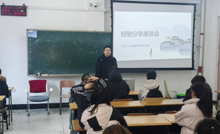 会后,在2024级大一班级班长引导下,由MBA临时党支部成员和MBA联合会会员组成的六个助力小组,分别奔赴本科生教室,与大一同学就学习目的、学习方法、职场素养等问题进行了充分的互动交流。