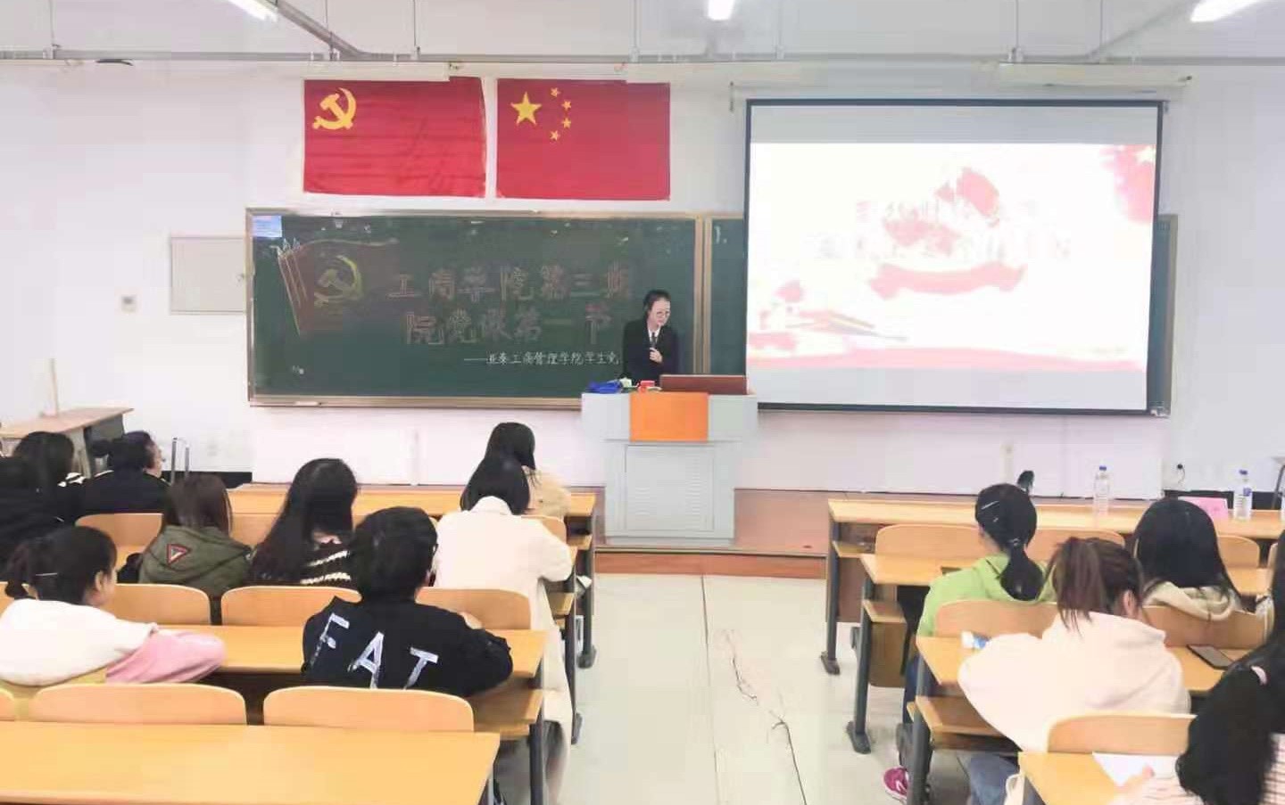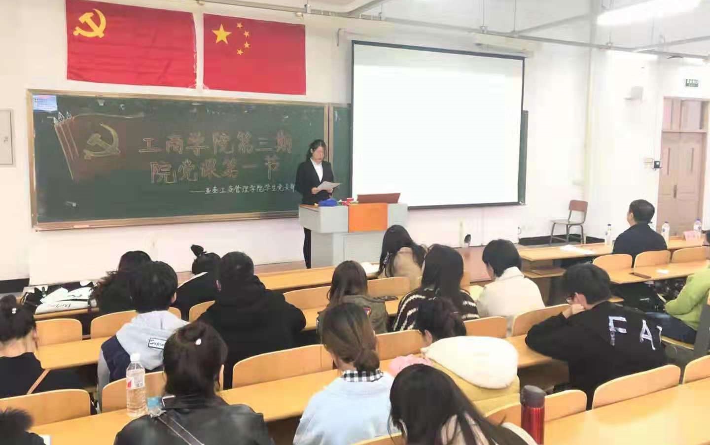 2019年10月16日,麻豆网 学生党支部组织入党积极分子在第一教学楼1105教室,进行了亚泰 麻豆网 第三期第一节党课培训。此次党课由学生党支部负责人郑鏑主持,党委书记李福平老师、党委副书记蒋武鹏老师出席。