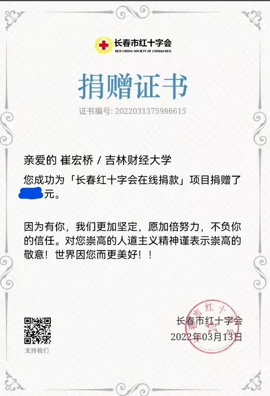 党员教师通过长春市红十字会积极爱心捐款,尽自己的绵薄之力,助力战胜疫情。同心抗疫,共克时艰!相信疫情终会散去,吉林必定吉临,长春终将常春。