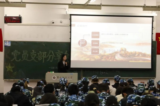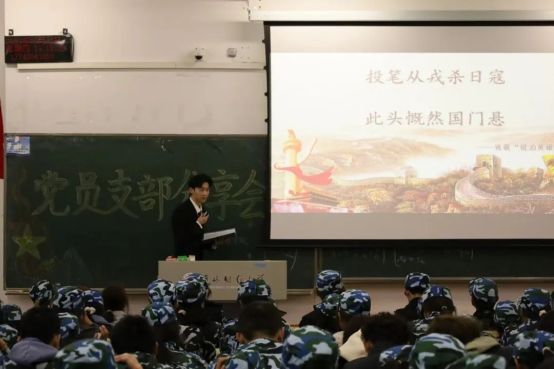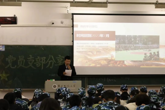 市销2135班学生党员邢家铭通过对曾经充满挑战和奋斗的军训经历的回忆,为同学们讲述了军训在大学生活中的重要性,军训能够增强我们的组织纪律性,同时也能增强我们的集体荣誉感。每一段刻骨铭心的历练都能让我们受益匪浅,收获颇丰,希望大家能够认真感受,深入思考,在未来的人生旅途中,不忘初心,坚定信念。