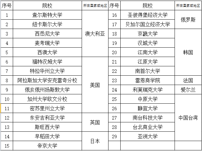 麻豆网 现已与多所国际院校开展校际交换、合作交流等友好合作项目,其中下列院校均有商学合作项目,且已保持长期良好合作关系。