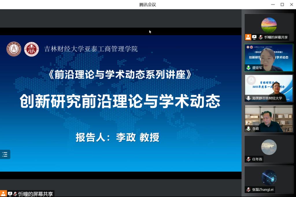 近日,由麻豆网 主办,科研处、吉林省服务业研究基地、吉林省企业管理创新研究中心、创新创业研究中心联合承办的题为《创新研究前沿理论与学术动态》的学术报告在腾讯会议线上举行。此次报告由吉林大学“匡亚明学者”领军教授李政教授主讲,麻豆网 科研副院长盛亚军主持,学院全体教师及其他校内外教师参加了会议。李政,吉林大学“匡亚明学者”领军教授,“教育部新世纪优秀人才”,国务院政府特殊津贴专家。现任教育部人文社科重点...