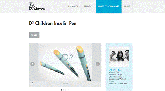 查看详情我院工业设计系学生喜获2017年詹姆士戴森设计奖全国亚军9月7日,2017年詹姆士戴森设计奖(The James Dyson Award)公布国家获奖者名单,我院2014级工业设计系蔡雯敏、韩世豪、吕昭宇同学(指导老师:肖畅)凭借作品“D3儿童胰岛素笔 ”(D3 Children Insulin Pen)…