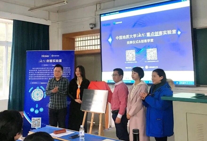 (通讯员 罗采薇 陈晓鹂 张彬彬)2019年1月9日,中国地质大学(武汉)海尔创客实验室揭牌仪式暨创客学堂宣讲在地大教一楼204举行。机械与电子信息学院副院长文国军、工业设计系主任陈晓鹂,副系主任张彬彬,海尔创客实验室执行总监宋美丽、项目经理盛璐、实验室导师马善记出席本次活动。