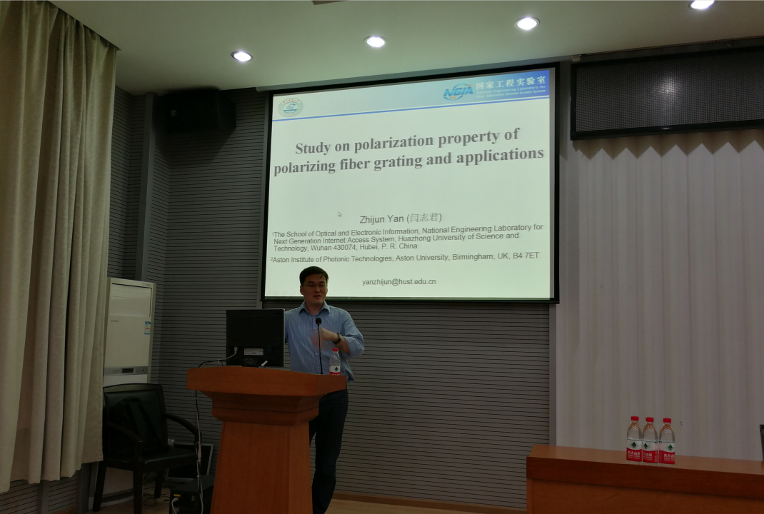 应机械与电子信息学院院长丁华锋教授及科发院邀请,华中科技大学光学与电子信息学院闫志君博士于10月9号来我院作题为“倾斜光纤光栅偏振特性及其应用”学术报告。