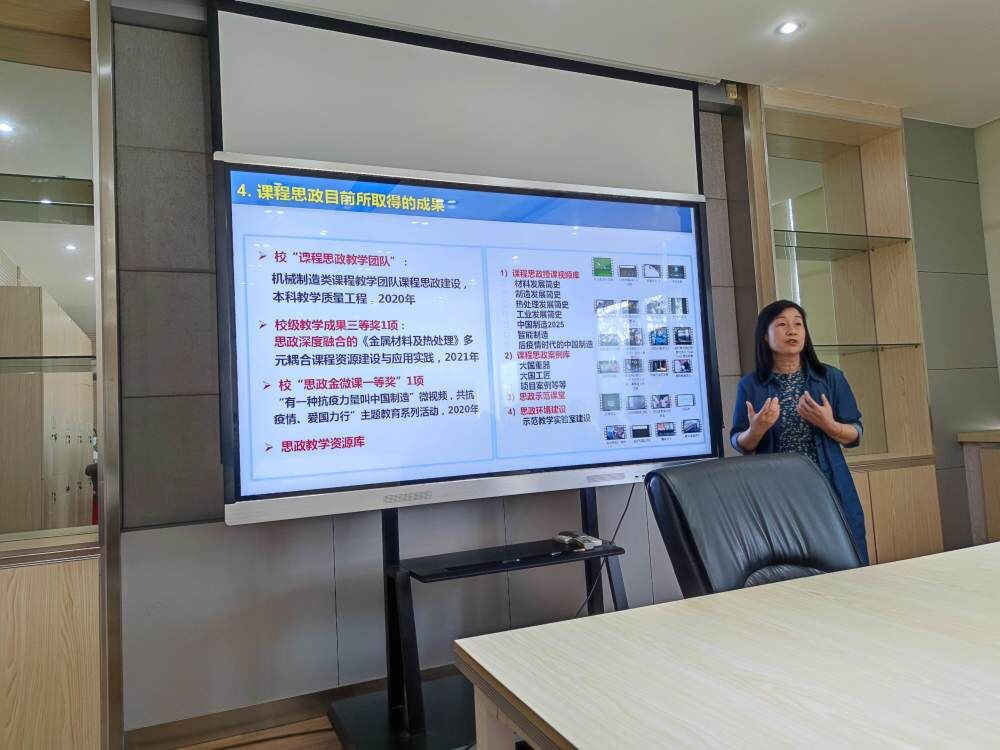 随后,金属材料与制造教学团队的徐林红、杨洋、刘浩和张文颖四位老师,围绕思政课程建设,分别在《金属材料热处理》和《金属工艺学》课程中讲述了如何将思政素材和课程教学过程相结合的多种实践模式,并与大家探讨了如何确定思政素材在教学过程中的比例等问题。老师们在听取了四位老师的汇报后进行了热烈的讨论,纷纷表示在今后集体学习中将继续探讨机械设计类课程以及机电一体化类课程的思政教学模式建设问题。
