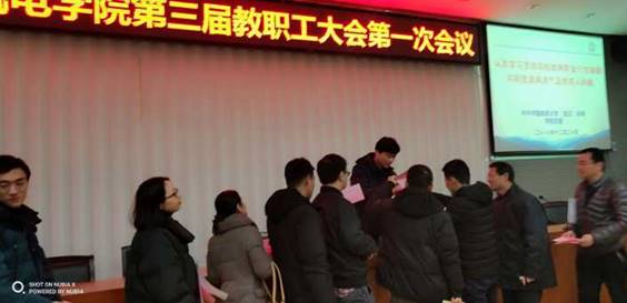 大会第二阶段议程为选举机电学院第三届工会委员会,全体与会人员经过民主投票,选举产生出机电学院新三届工会委员会委员八名(名单附后)。