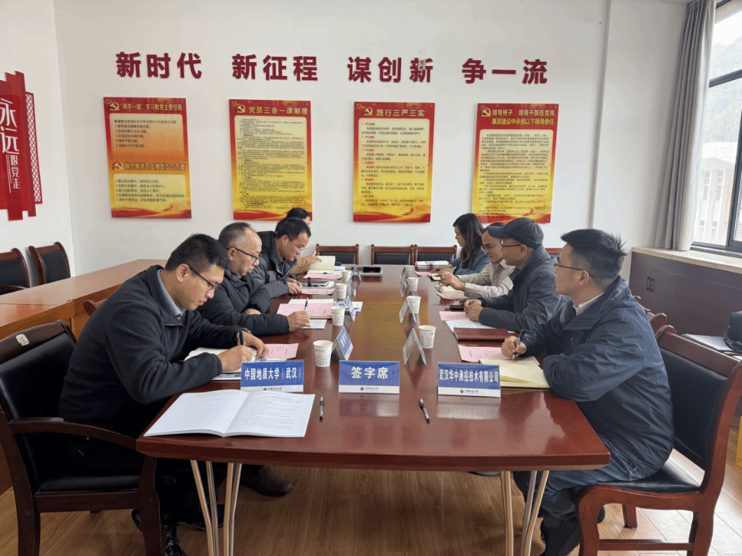 在双方代表的共同见证下,瞿祥华书记与刘冲副总经理正式签署战略合作协议,路桂英与刘冲副总经理签署技术开发合同,此举标志着地大机电学院与华中测控的合作迈入实质性阶段。