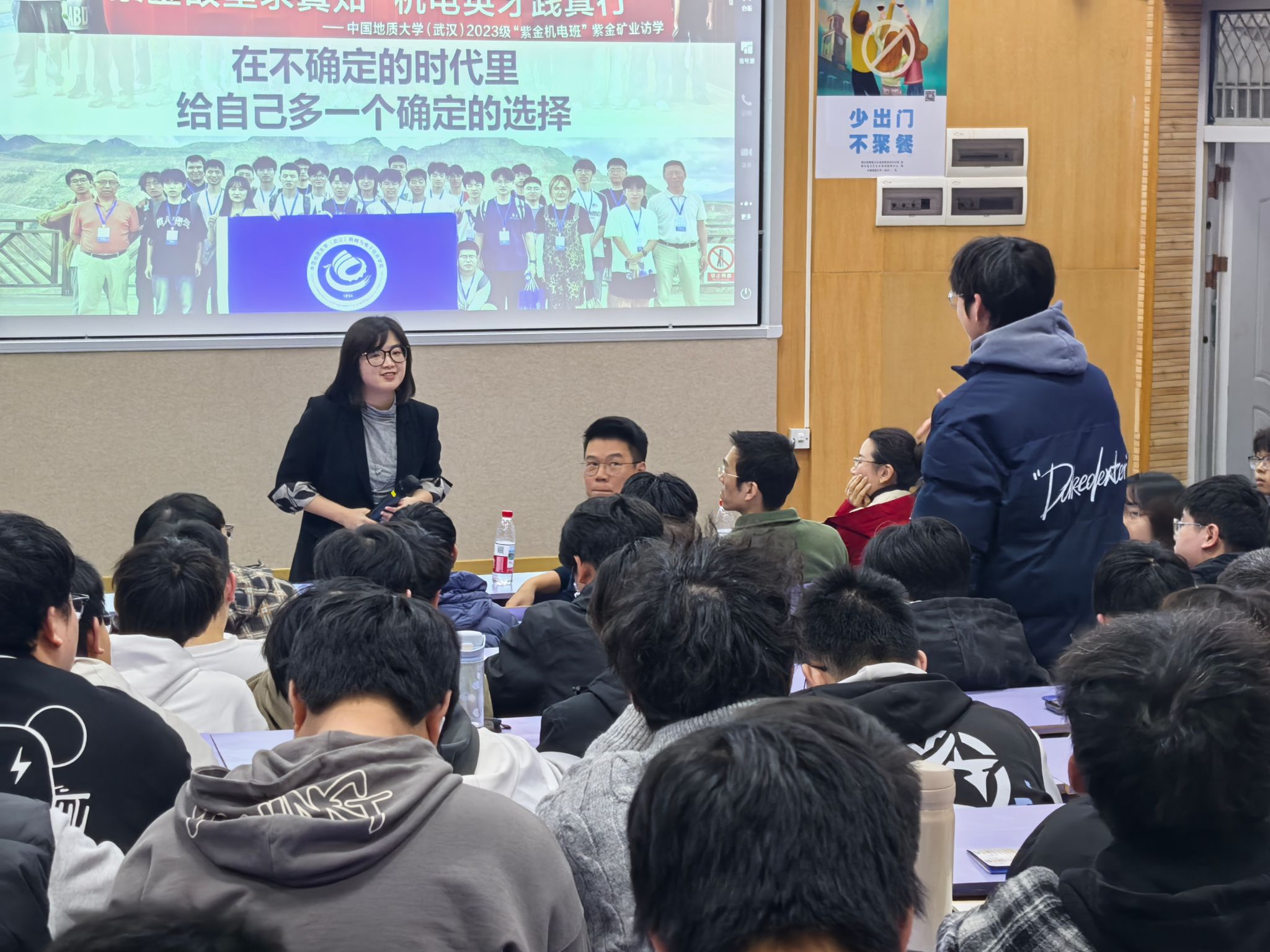 12月10日晚,学院成功举办第二期“紫金机电班”招生宣讲会。紫金矿业集团招聘处处长舒勃、培训处处长林晞,学院副院长王勇、党委副书记吴迪,以及2024级全体本科生参加了本次宣讲会。会议由2024级辅导员刘彪主持。