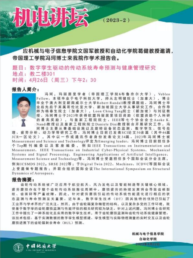 【4月26日】机电讲坛(2023-2):帝国理工学院冯珂博士