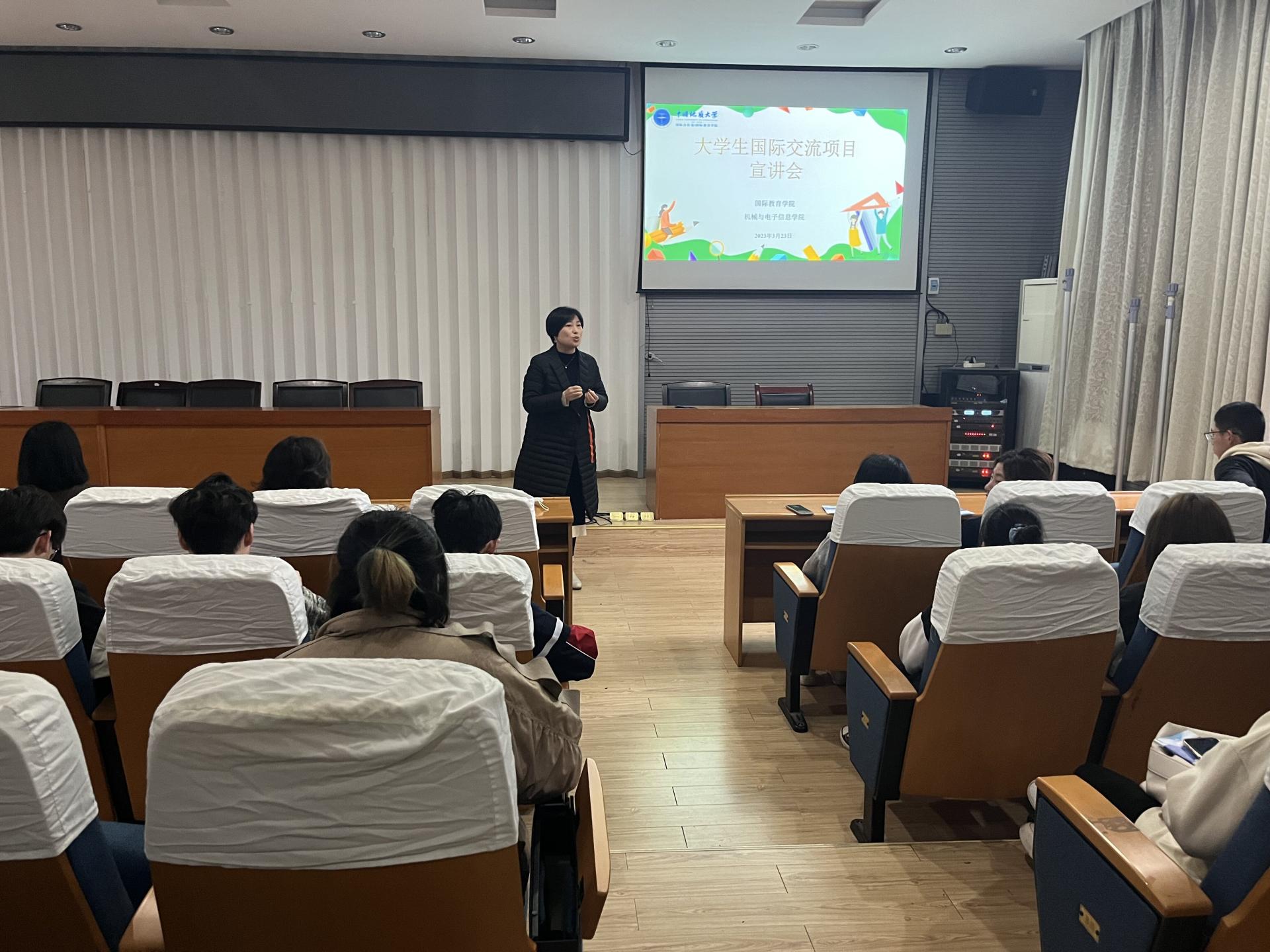 (通讯员:李雅莉 李梦宇 罗采薇)2023年3月23日下午,由国际教育学院主办、机械与电子信息学院承办的大学生国际交流项目宣讲会在西区教二楼召开。本次会议由罗采薇老师主持,国际教育学院范陆薇副院长、机械与电子信息学院于晓舟副书记出席会议。