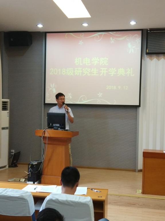 (通讯员 邱望德 李向南)9月12日,机电学院2018级研究生开学典礼在教二楼301报告厅举行,机电学院党委书记瞿祥华,院长丁华锋,副院长李波、文国军、黄田野,党委副书记齐世学,各专业教师代表和机电学院全体2018级研究生参加本次活动。活动由齐世学主持。