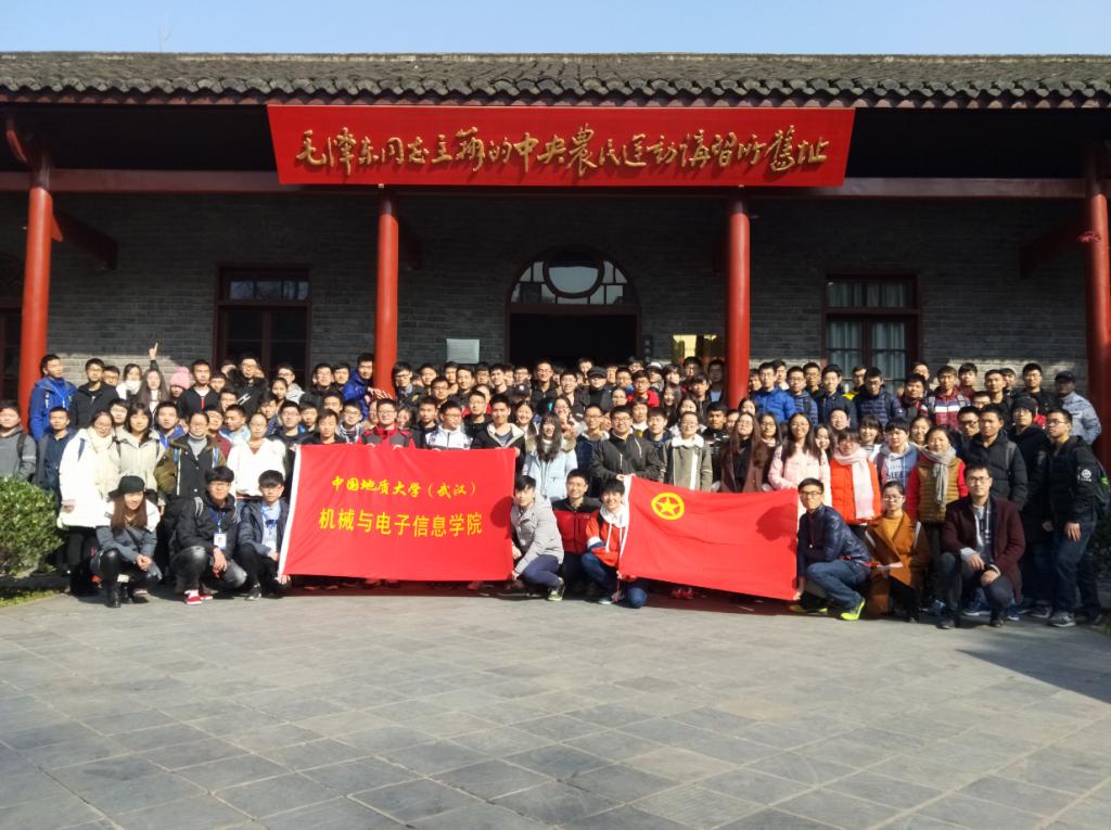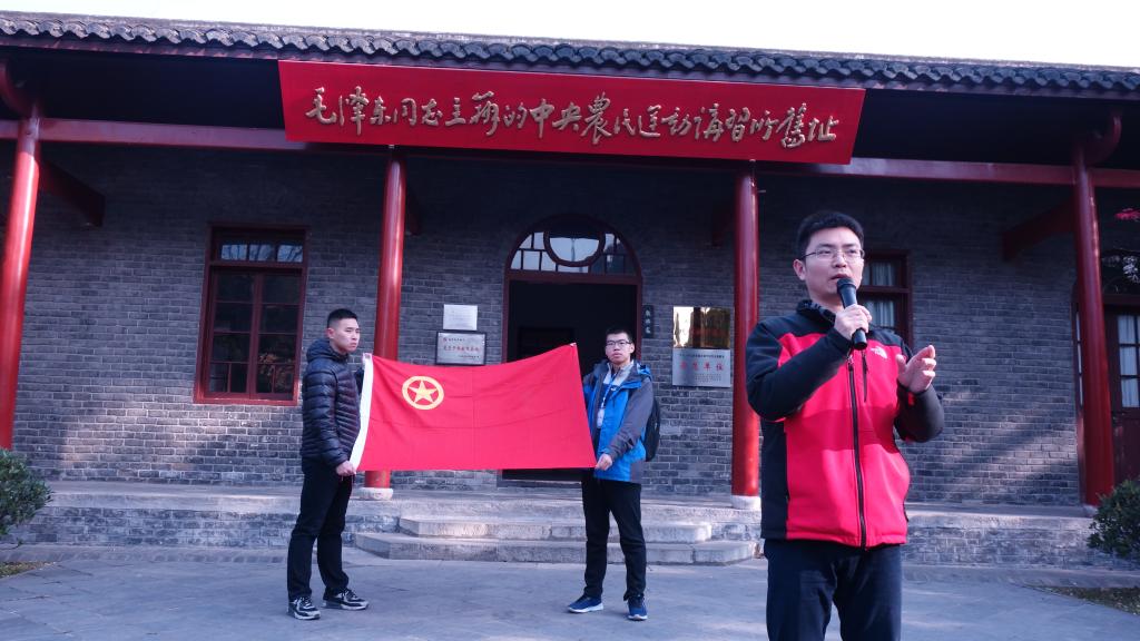 李向南对本次主题团日活动做简要介绍,武汉革命博物馆由武昌农民运动讲习所旧址纪念馆、毛泽东旧居纪念馆、陈潭秋烈士纪念馆和武昌起义门管理所合并而成。全体成员面向团旗、合唱团歌并重温入团誓词。随后,同学们开始自行参观武汉革命博物馆。参观结束后,同学们开展了党的十九大知识趣味问答,进一步学习了党的十九大精神。