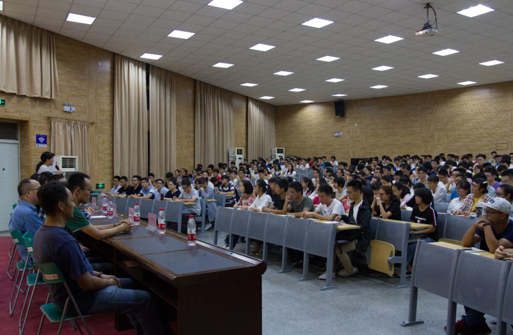 院长丁华锋讲话。他从机电学院历史沿革、现阶段师资力量、教学成果、科研方向、科研成果、人才培养计划等方面向新生介绍了机电学院。并希望大家能够珍惜时间、刻苦学习,做到品德高尚、基础厚实、专业精深、知行合一。
