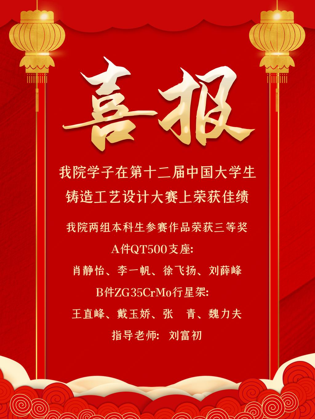 [2021.5]我院学子在第十二届中国大学生铸造工艺设计大赛上荣获佳绩