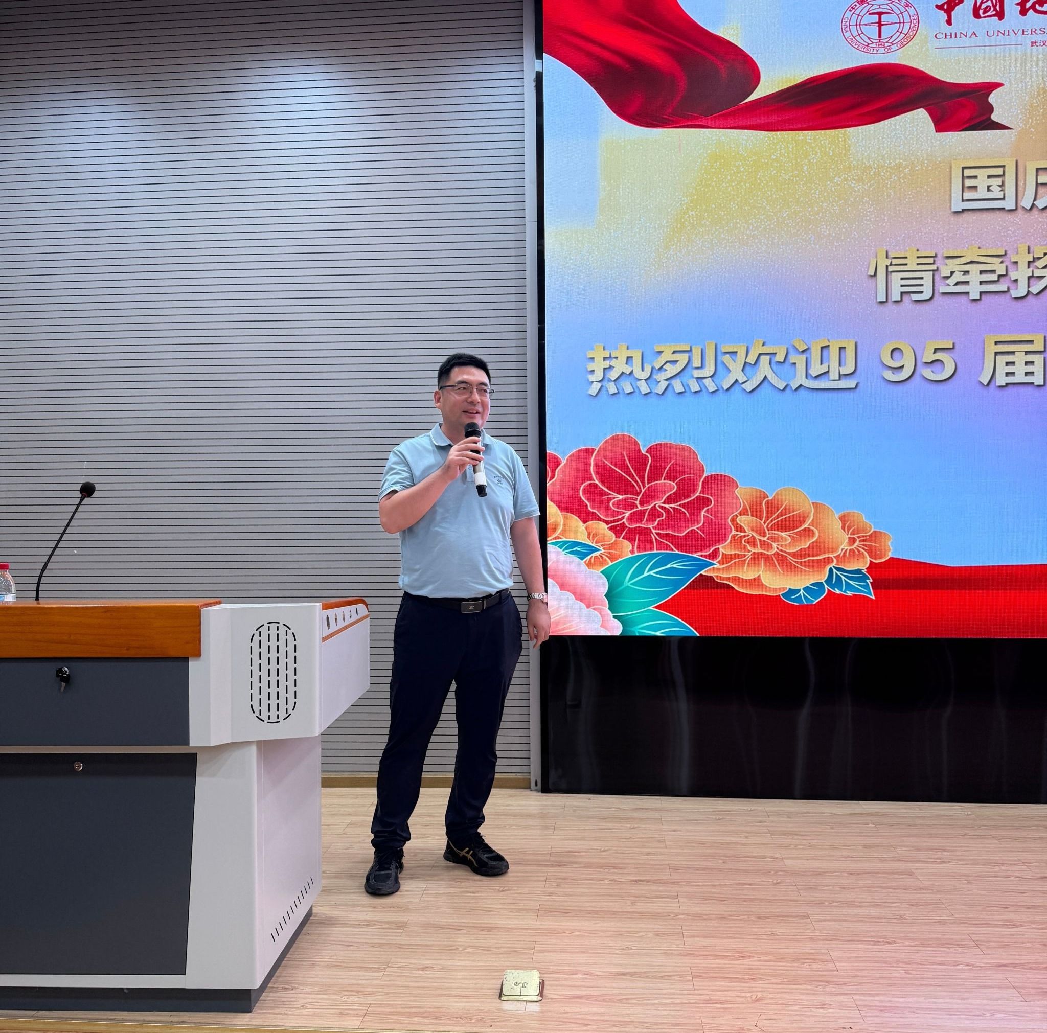 随后,机电学院院长宁伏龙以“与地大机电的深厚缘分”为切入点,深情回顾与机电学院和教二楼的难忘经历,引发在场校友与教师的情感共鸣。他系统梳理机电学院的历史沿革,详细介绍学院现有师资力量、科研平台及实习基地建设情况,重点聚焦本科教育质量与人才培养举措:从优秀毕业生代表的成长案例,到“李四光计划”、“紫金联合培养班”、“中德合作办学项目”等特色育人项目,全面展现学院多元化的人才培养路径。同时,宁院长宣布学院两大新动态:新增“机器人工程”本科专业、设立“低空技术与工程”硕博点。这两项举措为学院学科建设注入新鲜活力,进一步拓宽了育人维度,为学生成长提供更多可能。最后,宁伏龙院长向在场校友发出诚挚呼吁,期待大家结合自身行业经验与资源,为学院学科建设、产学研合作等领域献言献策,携手助力地大机电实现更高质量的发展。