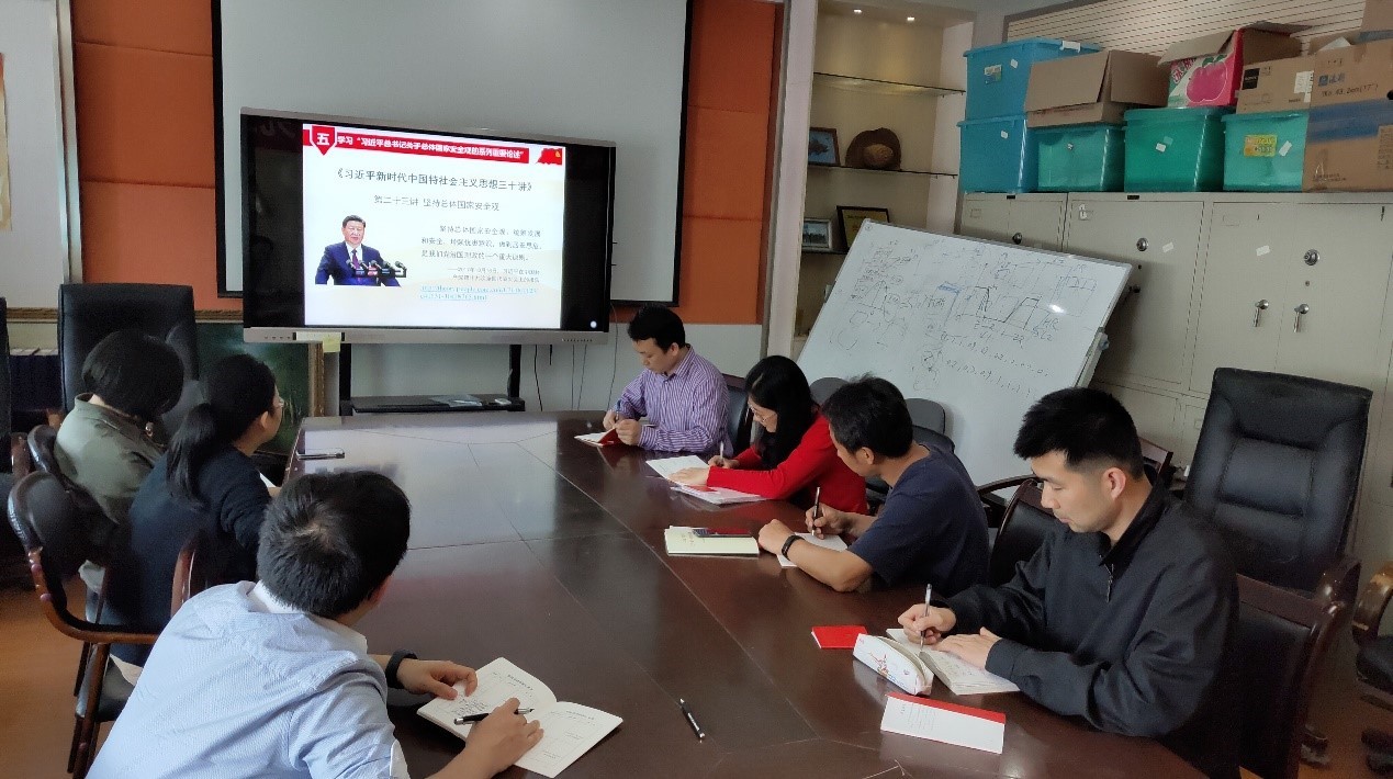 与会党员按照支部“主题党日”活动的规范要求,进行了奏唱国歌、重温入党誓词、诵读党章等环节,各支部党员在支部书记的带领下深入学习了《习近平新时代中国特色社会主义思想三十讲》第二十三讲、《习近平关于总体国家安全观论述摘编》、《中华人民共和国国家安全法》。