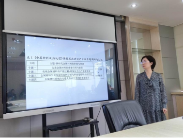 随后,金属材料与制造教学团队的徐林红、杨洋、刘浩和张文颖四位老师,围绕思政课程建设,分别在《金属材料热处理》和《金属工艺学》课程中讲述了如何将思政素材和课程教学过程相结合的多种实践模式,并与大家探讨了如何确定思政素材在教学过程中的比例等问题。老师们在听取了四位老师的汇报后进行了热烈的讨论,纷纷表示在今后集体学习中将继续探讨机械设计类课程以及机电一体化类课程的思政教学模式建设问题。