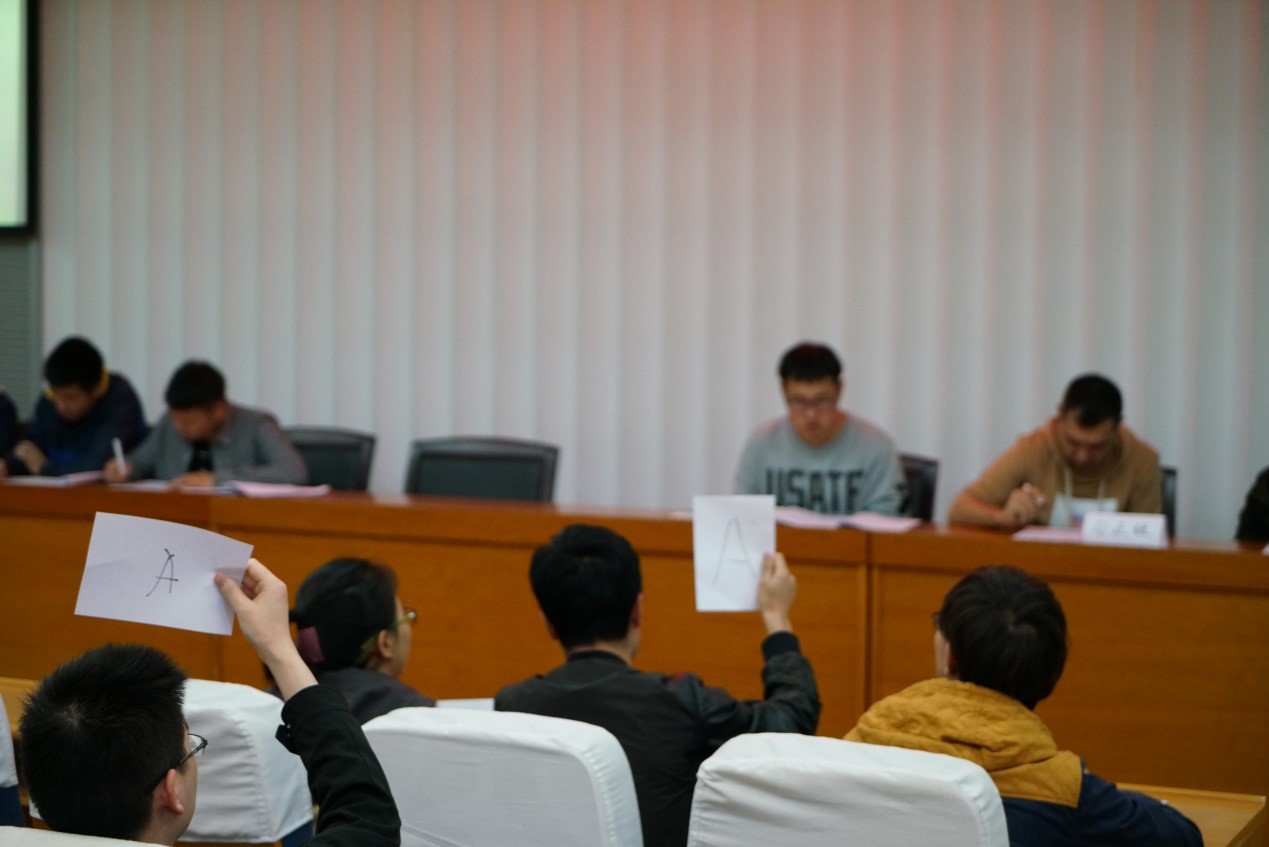加赛环节由公正组丁钰峰老师现场出题,采取五局三胜制,最终国防生向阳党支部表现优异获得第一名,2016-1硕士研究生党支部获得第二名。学院党委副书记于晓舟,辅导员丁钰峰、买买提·艾尔肯为获得前三名的集体和个人颁发了奖状及奖品。