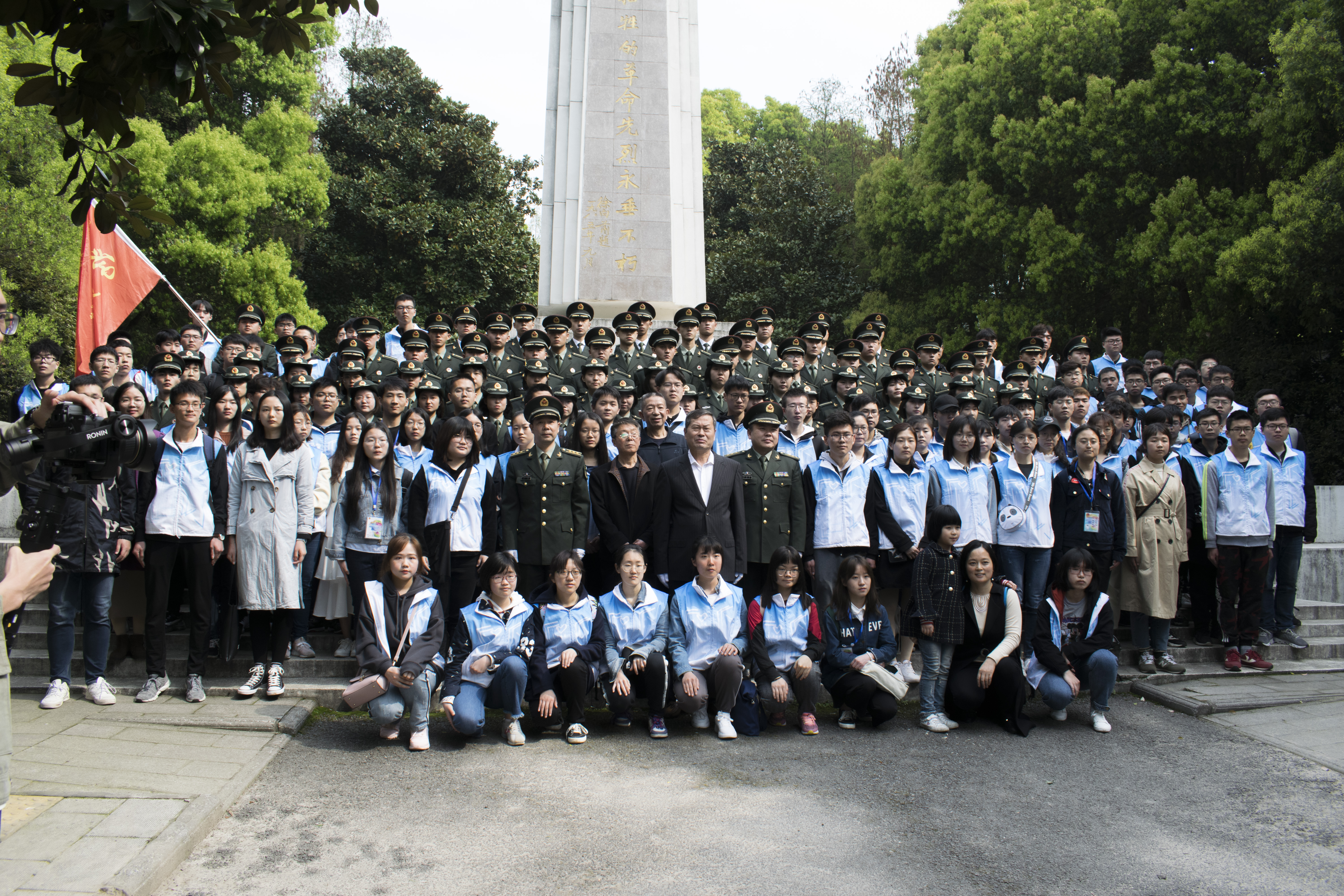 4月5日上午十点,参加活动的老师与同学在位于武昌区洪山南麓的北伐叶挺独立团烈士陵园隆重集会,重温英雄历史、缅怀革命先烈。同学们首先参观了叶挺独立团纪念馆,在讲解员的带领下,了解90多年前独立团从筹划到诞生、从挥师北上到饮马长江的那段波澜壮阔的历史。纪念馆参观完毕,适逢国防科技大学信息通信学院“英烈子女班”学员一大队在独立团烈士纪念碑前举行祭英烈活动,同学们受到他们的邀请,参加并观摩了他们的祭奠仪式。仪式上整齐洪亮的国歌军歌、慷慨激昂的碑前演讲、庄重严肃的军人誓词,无不震撼着每位同学的内心。学院同学还与国防科技大学的同学们共同列队,向革命先烈敬献鲜花。一朵朵鲜花、一次次鞠躬,都代表着同学们对于革命英烈的崇高敬意和无限缅怀,也表明了同学们接过先烈旗帜、继承革命精神、努力学习钻研、立志报效国家的坚定信念。