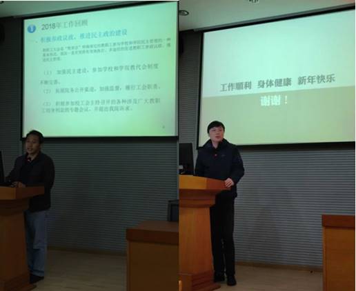 机电学院工会主席郝国成同志作2018年工会工作报告。报告汇报了2018年机电学院工会取得的各项成绩,展望2019年的工会工作,另就2018年度机电学院工会经费收支情况作了公开说明。机电学院办公室主任陶安东同志作机电学院2018年财务工作报告。报告详细介绍了2018年学院各项经费的收支情况。