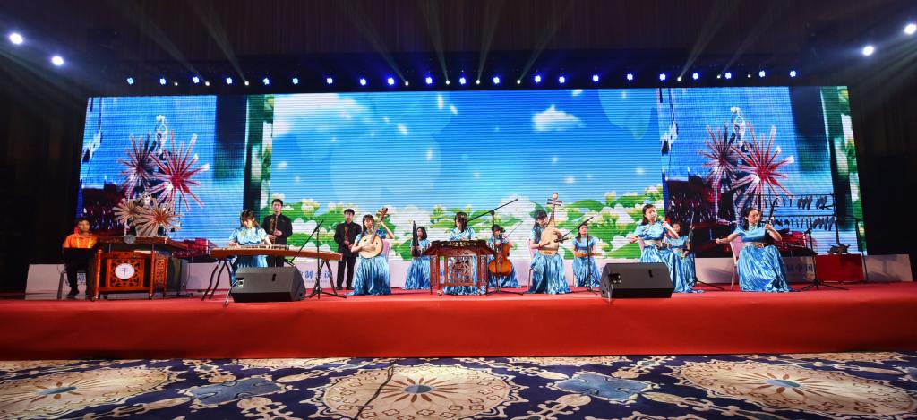 本次演出是海百合首次公开登台亮相演奏扬琴,与我校民乐团演奏的编磬、古筝、琵琶、二胡、竹笛等多种民族乐器一起协同表演,展现了艺术与科技的交互融合,呈现出良好的艺术表演效果。