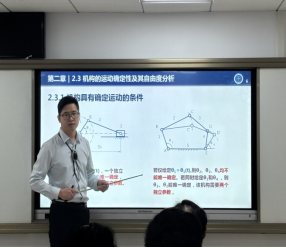 竞赛过程中,四位青年教师严格遵循教学大纲要求,围绕教学目标,精心设计教学内容,通过生动的讲解和实例展示,将课程重难点转化为直观生动的教学场景,尽显学院青年教师的风采和教学实力。机械工程系梅爽老师在《机械CAD/CAM》课程中,精彩展示了逆向工程的相关内容。他结合实际案例,深入浅出地概述了不同逆向建模方法的基本原理,鼓励学生在后续课题研究中进一步独立探索和深入思考,培养学生的自主学习和研究能力。电子信息系李莹玉老师讲述《先进感知与物联网技术》中的物联网定位技术时,从"为什么"和"怎么用"两个方面,清晰地让学生了解物联网中定位技术的必要性及运用方法。其PPT融入大量动画和图表,内容丰富且通俗易懂,有效帮助学生理解复杂的技术知识。机械工程系柏伟老师在《机械原理》课程中,以热点案例引入问题,通过实物讲解机构具有确定运动的条件,并细致讲解平面机构自由度公式及注意事项,加深了学生对课程内容的理解和思考,让抽象的理论知识变得具象化。通信工程系易颖老师对LC振荡器的定义和工作原理通过板书进行详细讲解,逻辑严谨,内容充实,注重通过实际数据和案例解决学生的难点问题,展现了扎实的专业知识和教学能力。