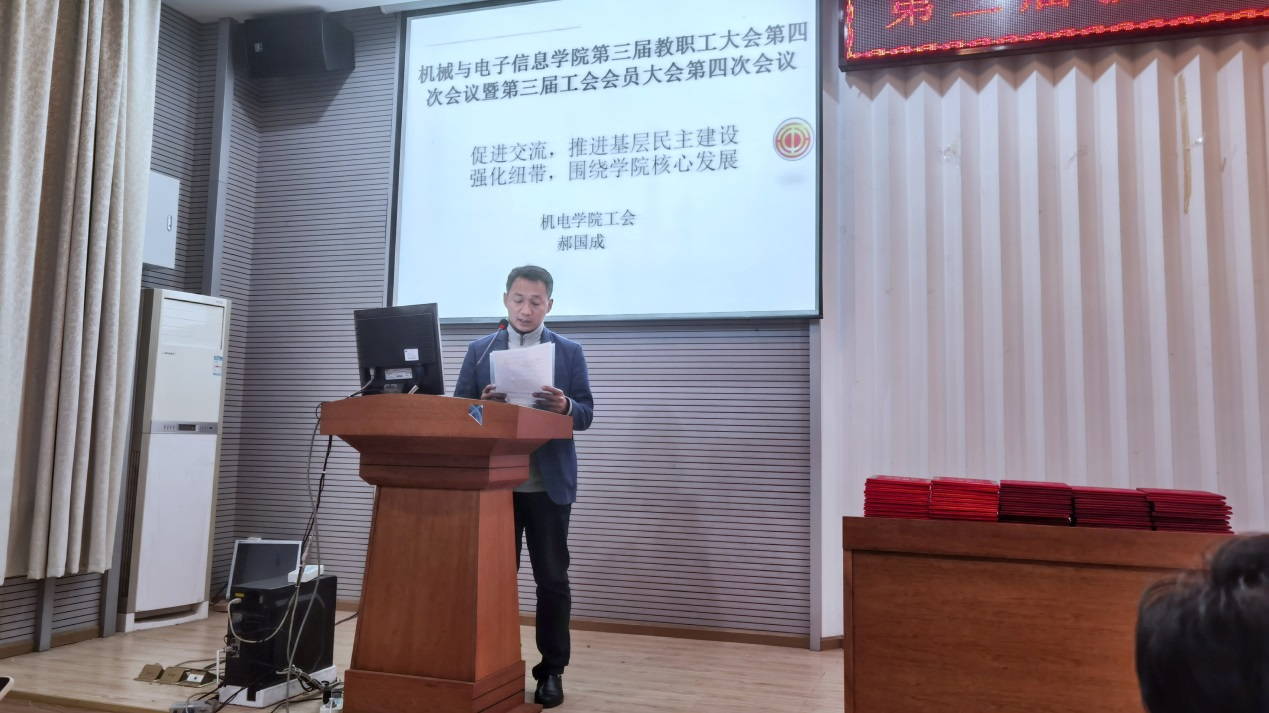 2月23日下午4:10,机械与电子信息学院在教二楼301会议室召开第三届教职工大会第五次会议。机电学院全体教职工,退休老教师代表、学生代表参加会议。会议由机电学院党委副书记于晓舟同志主持。