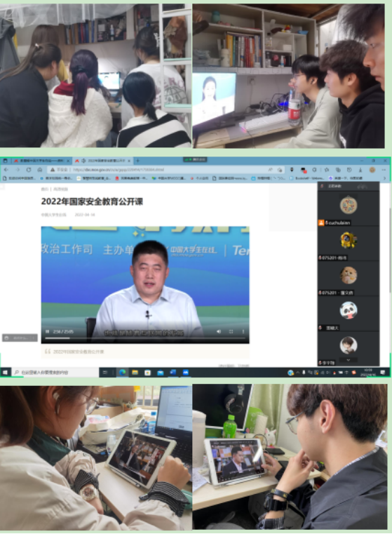 此外,各师生支部还组织开展线上讨论、主题“云”班会等学习交流活动,大家纷纷表示维护国家安全,人人有责,要时刻提醒自己,国家安全和个人之间有着紧密的关系,只有国家安全,个人才有保障,安全是发展的前提,发展是安全的保障;要树立正确国家安全观,严格遵守国家法规。