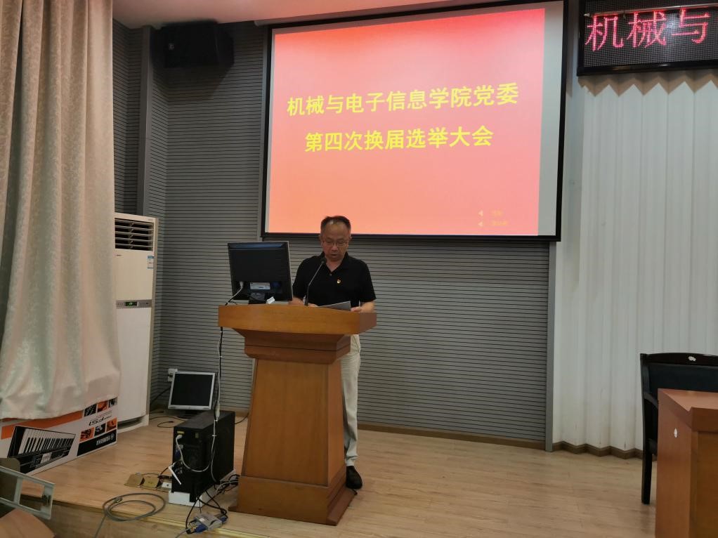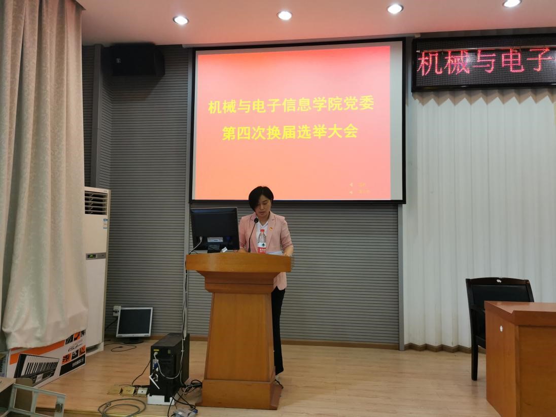 瞿祥华同志报告了第四届机械与电子信息院党委委员、新一届纪委检查委员会委员产生基本过程和候选人简历,宣读了校党委《关于同意机械与电子信息学院第四届党委委员候选人、纪委委员候选人的批复》。