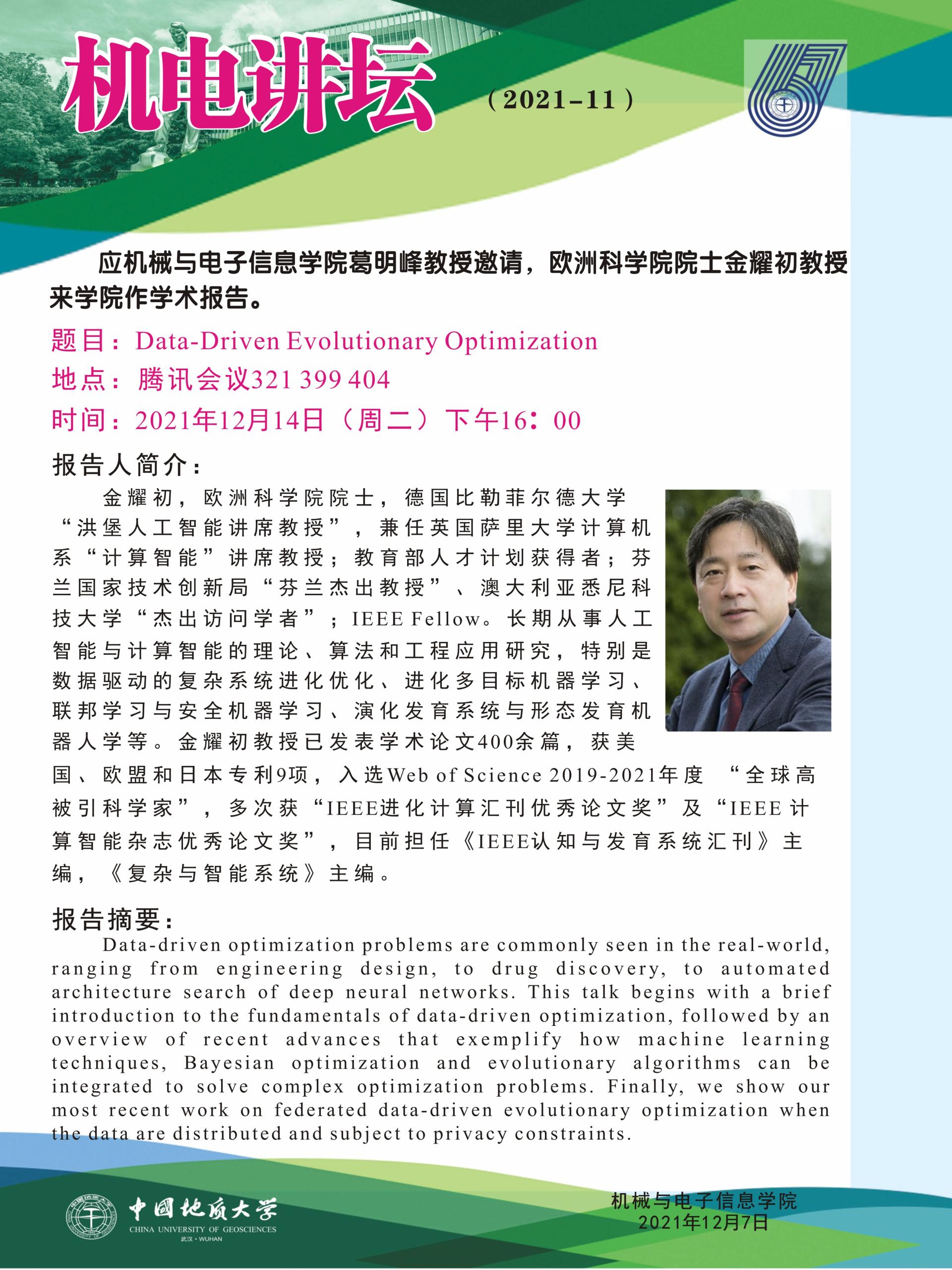 机电讲坛2021-11:欧洲科学院院士金耀初教授学术报告
