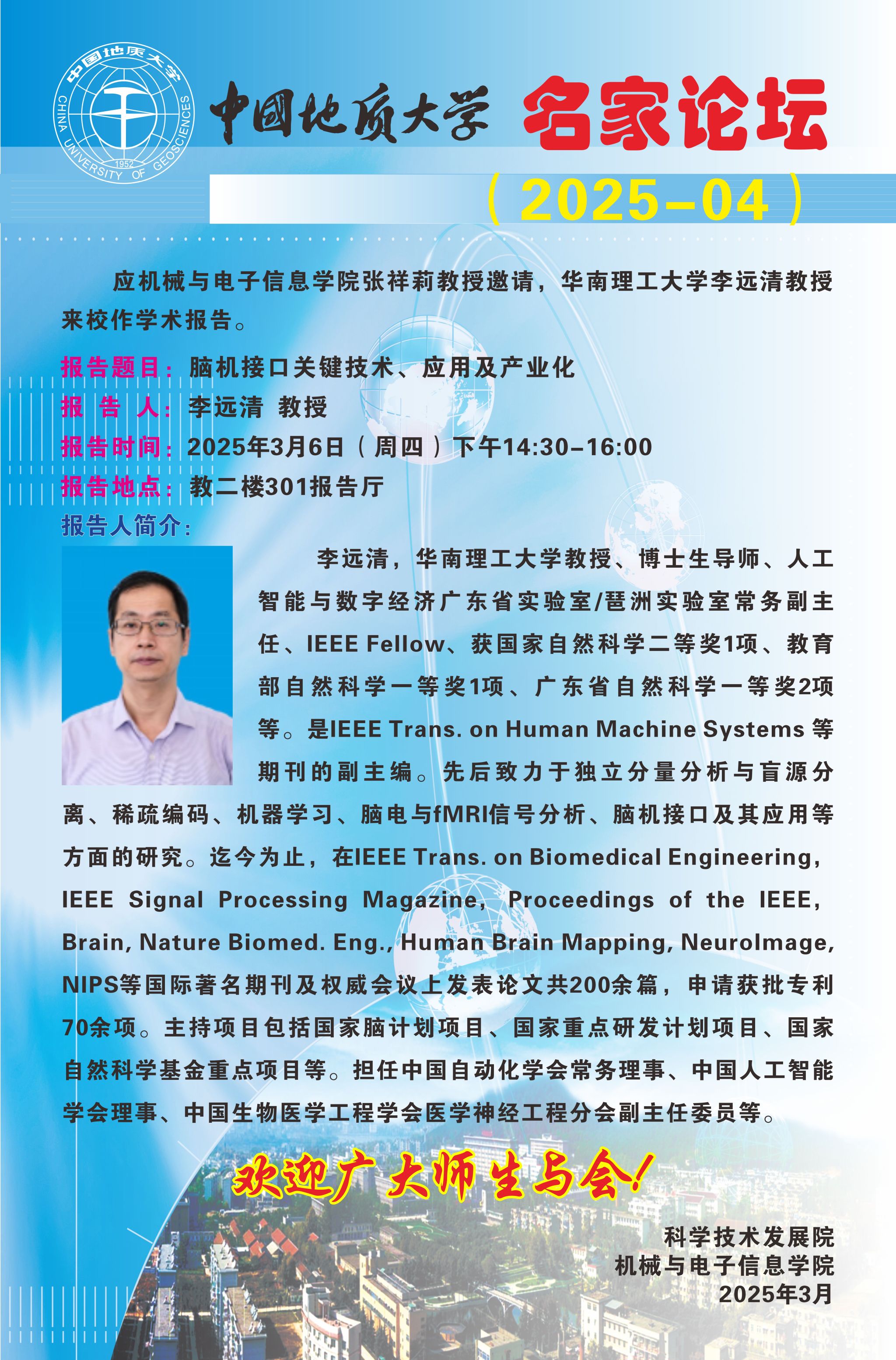 【3月6日】机电讲坛(2025-1):华南理工大学教授李远清来我院作学术报告