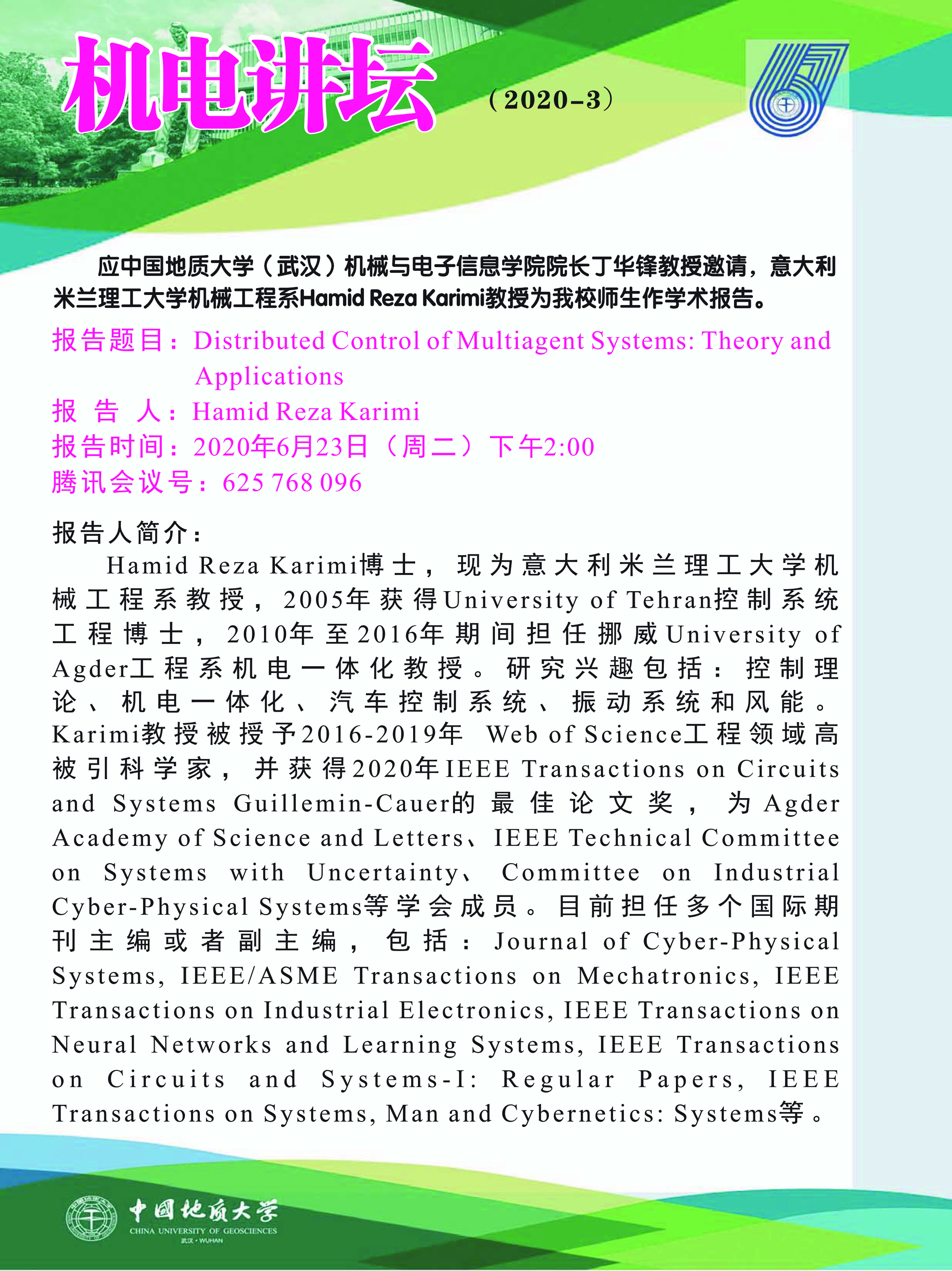 机电论坛:意大利米兰理工大学Hamid Reza Karimi教授学术报告