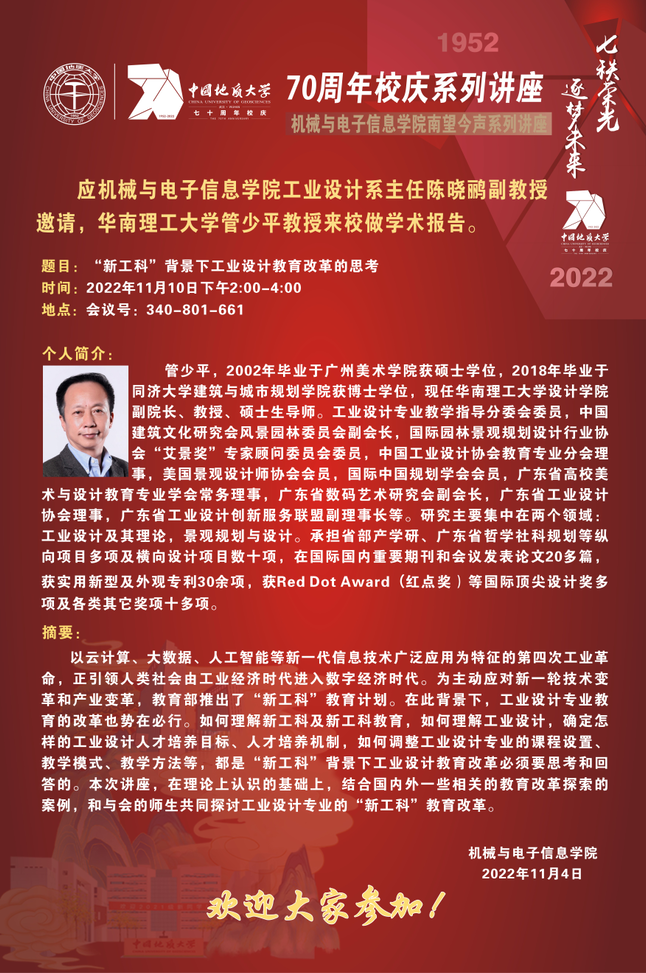 【11月10日】校庆系列学术活动---机电讲坛(2022-23):华南理工大学管少平教授