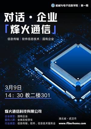 3月9日下午,我院第一期“对话·企业”专题讲座在教二楼301举行。烽火通信科技有限公司人力资源部负责人夏康宁应邀为学院通信专业的130名学生讲授题为《烽火少年 乘烽启航》行业发展动态主题报告。