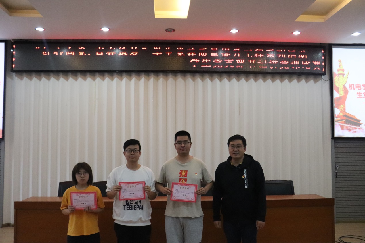 学院党委委员、机械系党支部书记韩光超为一等奖获得者颁奖