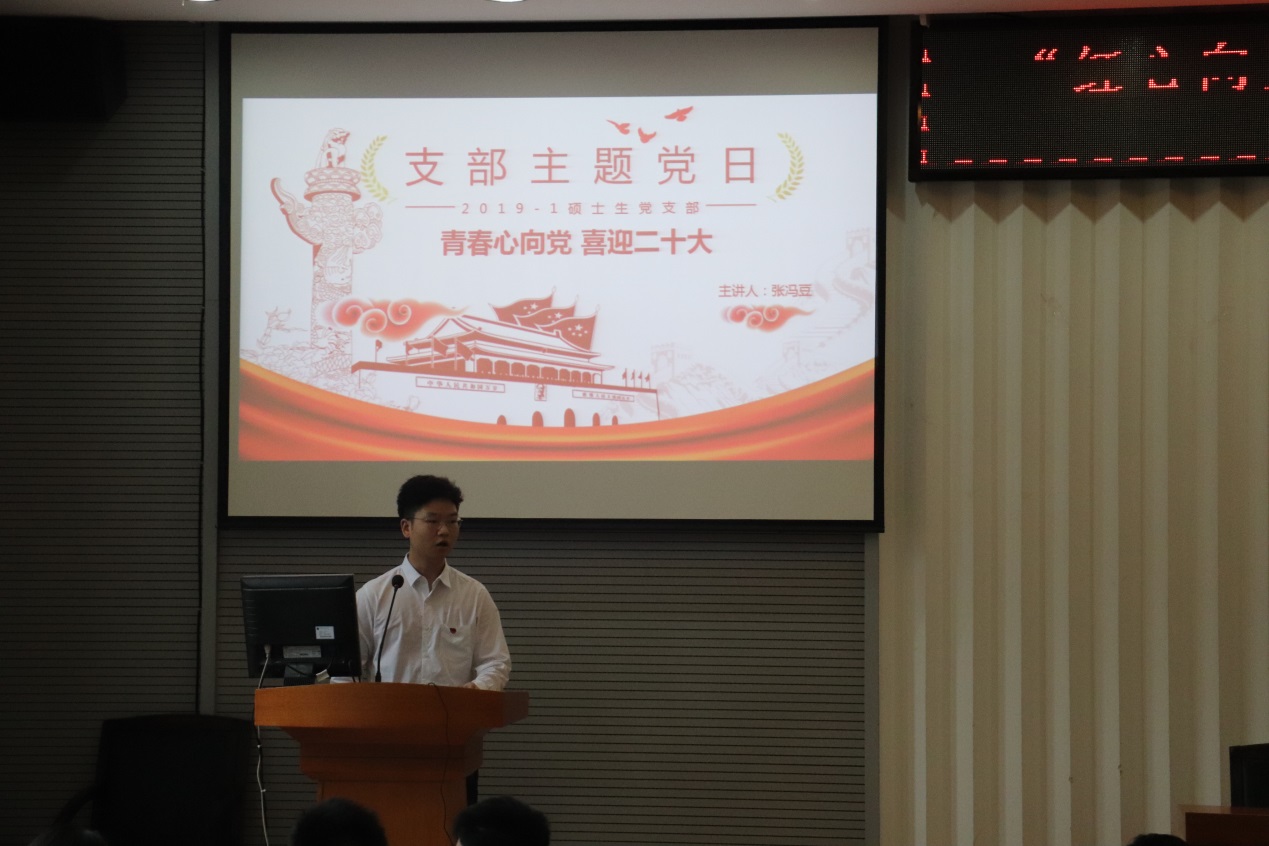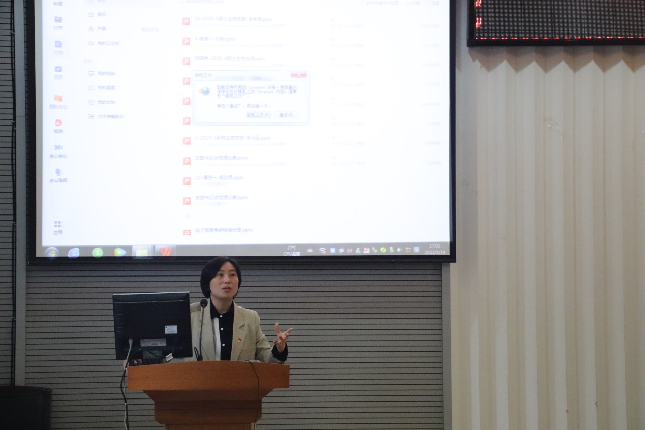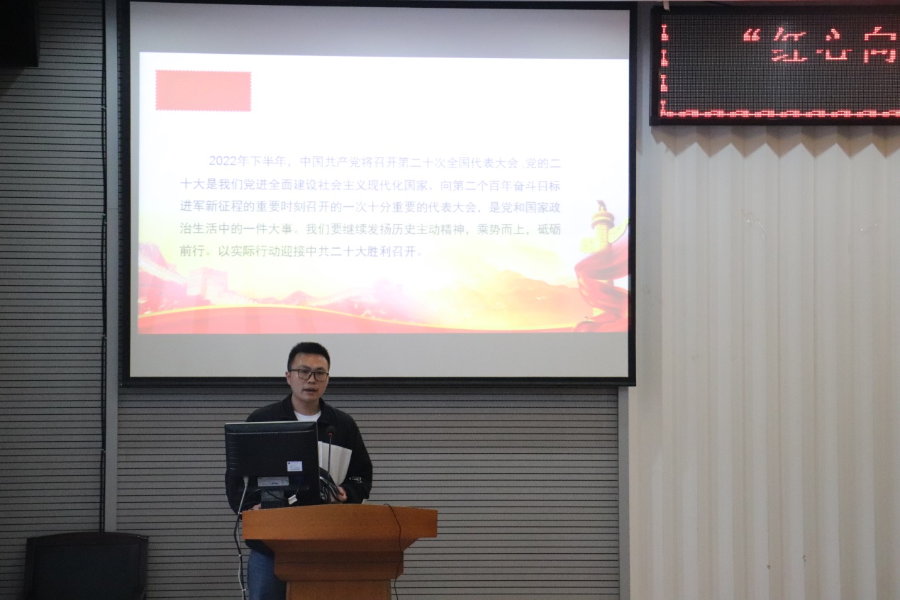 519日下午,学院“红心向党,青春有梦”学生党建质量提升工程系列活动之党支部书记讲党课比赛在教二楼301举行。学院党委副书记于晓舟,学院教职工党支部书记、学工组辅导员和学生党员代表现场观摩比赛。