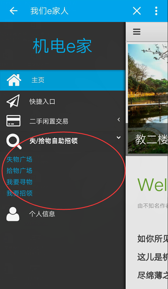 e.失/拾物自助招领,可在此处发布/查找丢失的物品