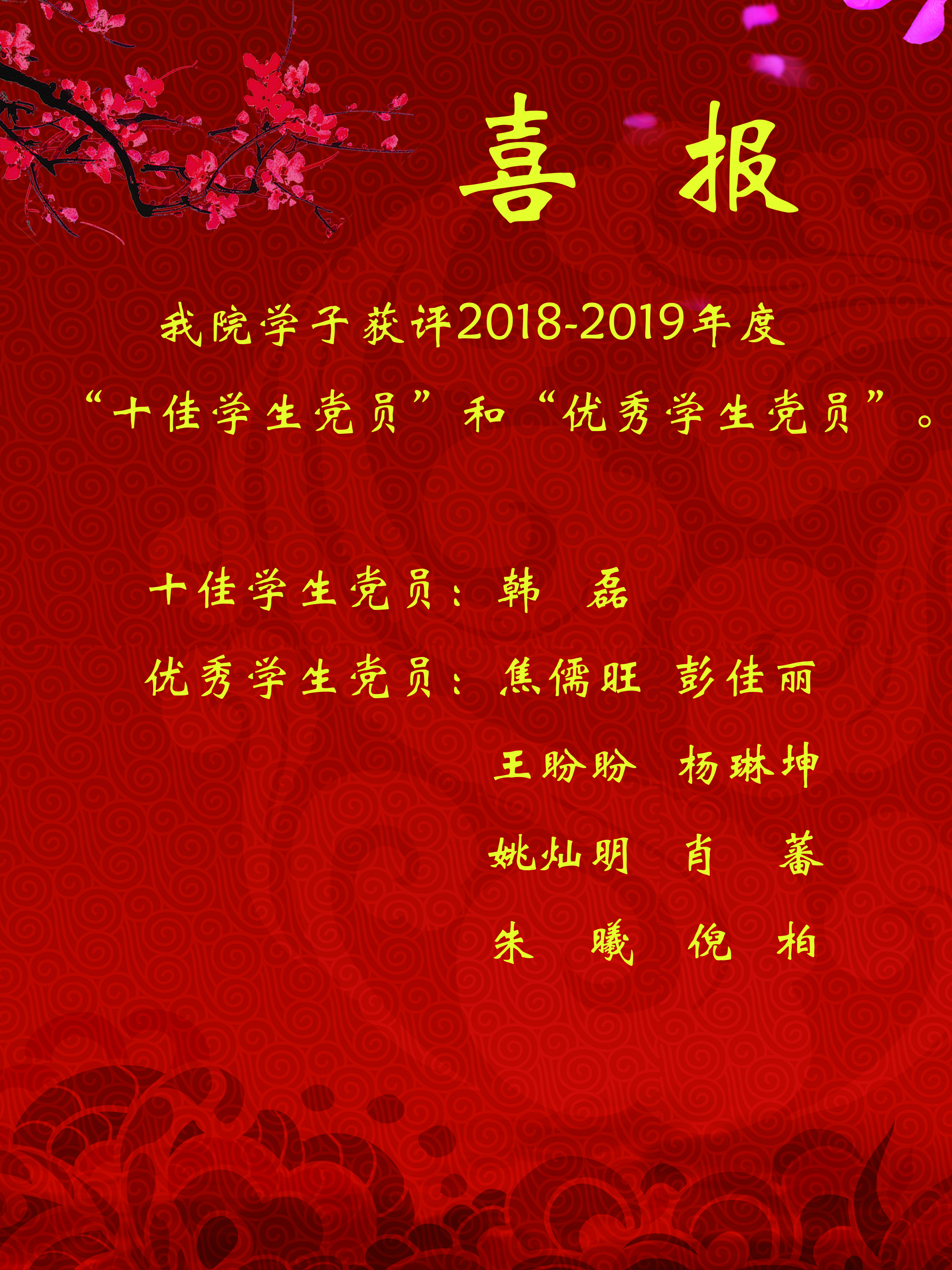 [2019.7]2018-2019年度校级“十佳学生学员”、“优秀学生党员”