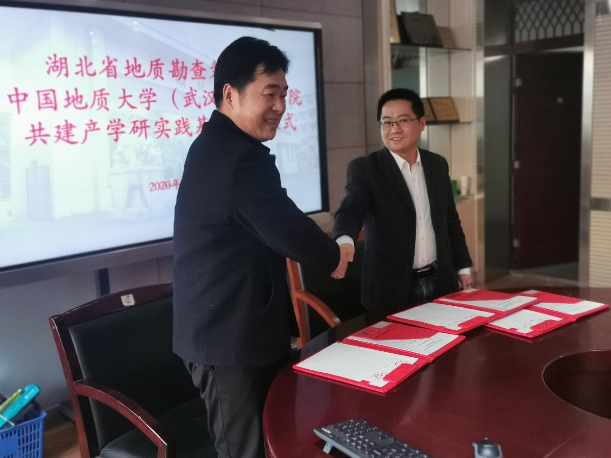 2020年12月21日下午2点,湖北省地质勘查装备中心党委书记任康进,带领中心副主任吴专、办公室主任杨梅、武汉探矿机械厂董事长李小标,就双方实验室共建、产学研基地落实等事宜,来我院交流并举行签约仪式。学院党委书记瞿祥华、机械系主任宋潮龙、机械系党支部书记韩光超、机械系副主任梅爽、实验中心主任赵权、办公室主任李昌平以及机械系教师吴来杰、程斯一、贺鑫等老师参与了座谈交流,会议由副院长文国军教授主持。