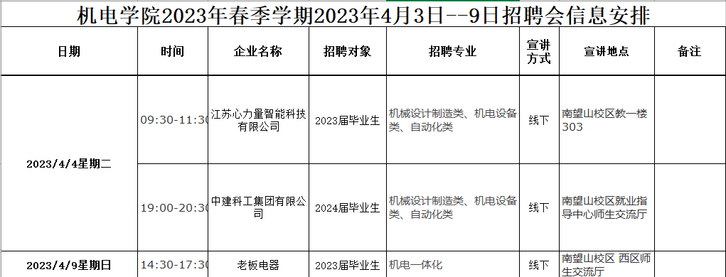【毕业生·2023年3月27日--4月2日招聘会信息】